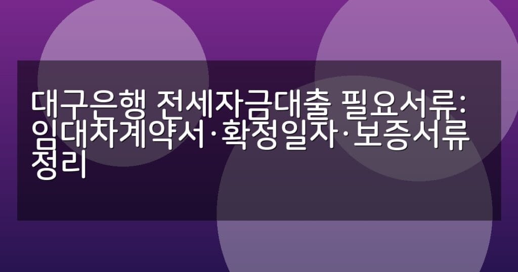 대구은행 전세자금대출에 필요한 임대차계약서, 확정일자, 보증서류 등 필수서류를 상세히 정리하고 신청 절차와 FAQ까지 안내합니다.