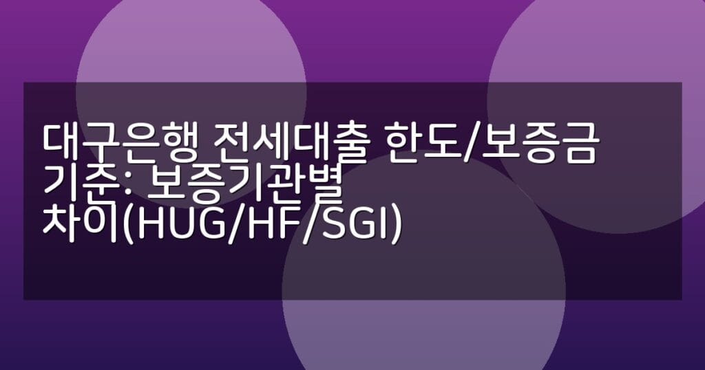 대구은행 전세대출 한도와 보증금 기준을 HUG, HF, SGI 보증기관별로 비교 분석. 신청 절차와 유의사항, FAQ까지 자세히 안내합니다.