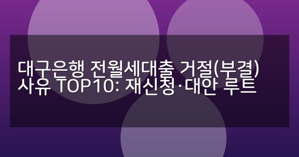 대구은행 전월세대출 거절 사유 TOP10과 재신청 방법, 대안 금융상품까지 풍부한 정보와 표로 쉽게 비교하세요. 2026년 최신 가이드.