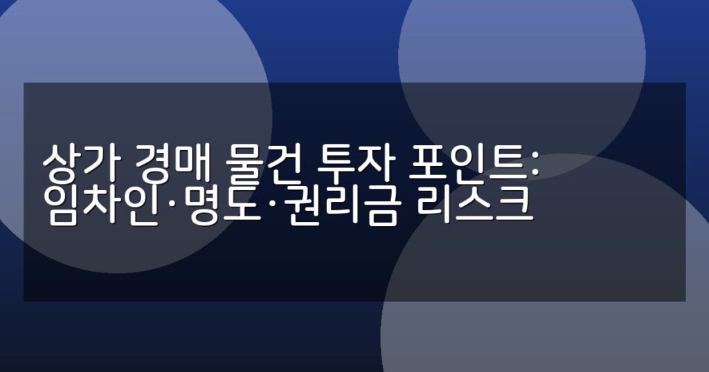 상가 경매 투자 시 임차인 권리, 명도 및 권리금 리스크를 체계적으로 분석하고 대응하는 방법을 안내합니다. 성공적인 투자 전략과 비교 체크리스트 제공.