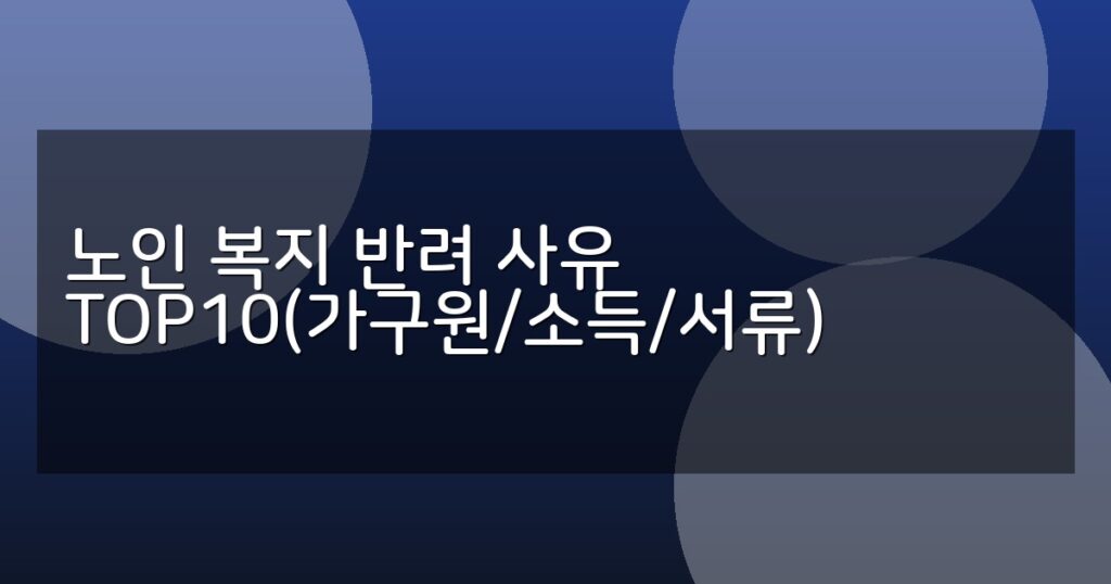 노인 복지 신청 시 자주 발생하는 반려 사유 TOP10을 가구원, 소득, 서류 기준으로 분석하고 신청 절차와 FAQ를 상세히 안내합니다.