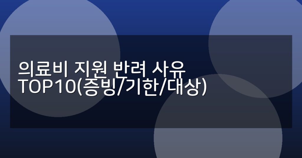 의료비 지원 반려 사유 TOP10을 증빙, 기한, 대상별로 상세 분석. 신청 절차와 FAQ까지 안내해 성공적인 지원 신청을 돕습니다.
