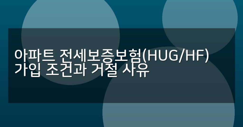 아파트 전세보증보험 HUG와 HF의 가입 조건, 거절 사유 및 신청 절차를 상세히 안내합니다. 안전한 전세 계약을 위한 필수 정보 제공.