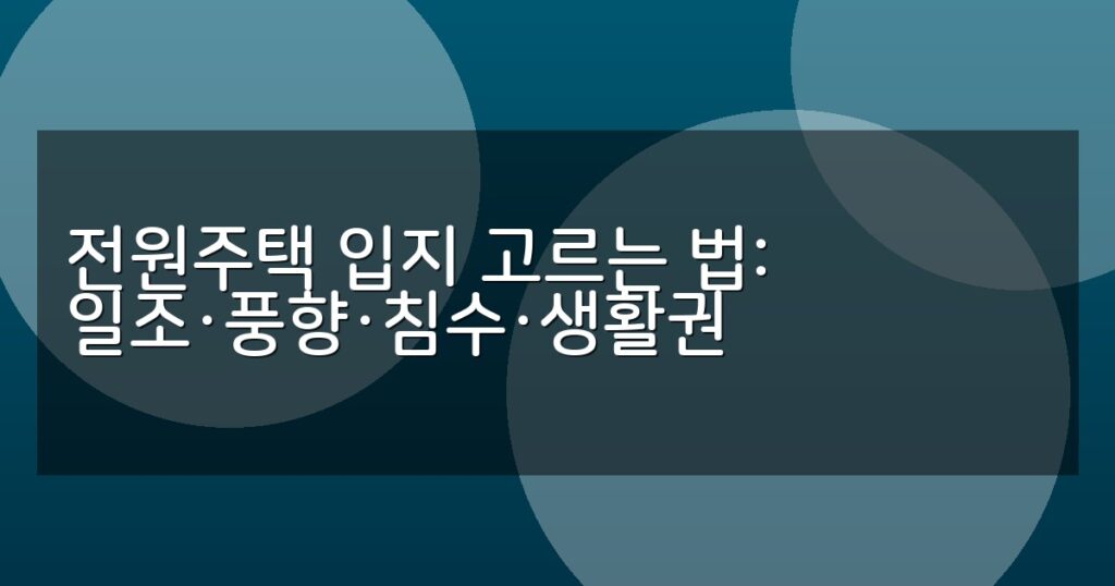 전원주택 입지 선택 시 일조량, 풍향, 침수 위험, 생활권을 꼼꼼히 분석하는 방법과 체크리스트, 비교표를 활용한 최적 부지 선정 가이드입니다.