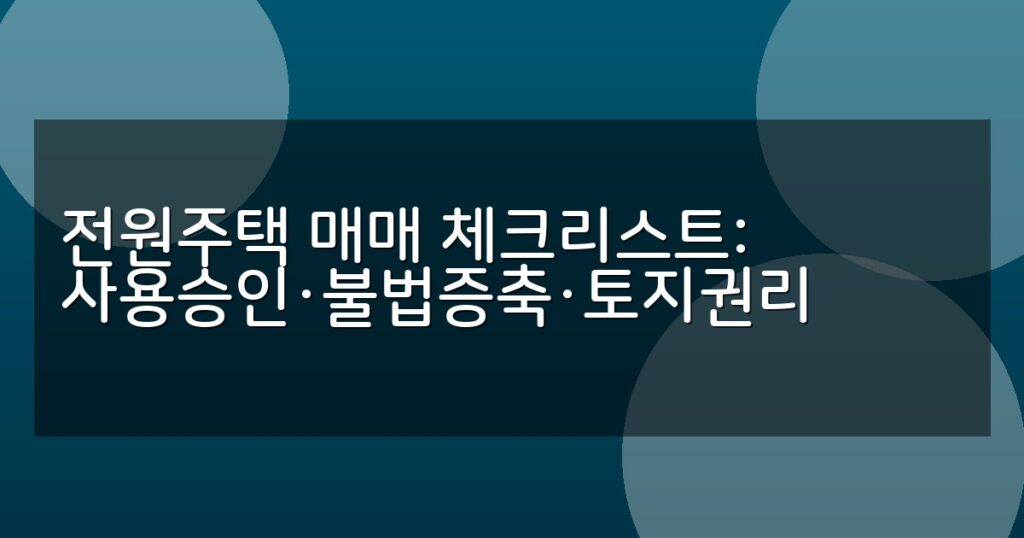 전원주택 매매 시 필수로 확인해야 할 사용승인, 불법증축, 토지권리 사항을 단계별 절차 및 표로 쉽게 정리한 실무 가이드입니다.