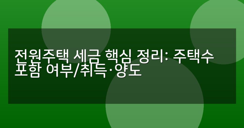 전원주택 보유 시 주택수 포함 여부와 취득세, 보유세, 양도소득세 핵심 내용을 표와 단계별 절차로 상세 안내하는 2026년 최신 가이드입니다.
