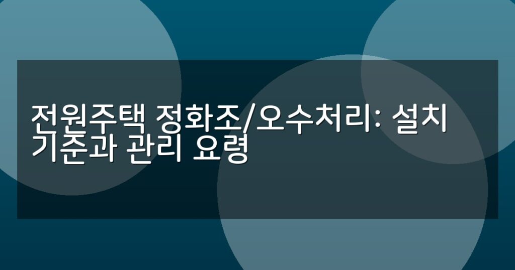 전원주택 정화조 설치 기준과 오수처리 관리 요령을 상세히 안내합니다. 법적 기준, 종류별 비교, 설치 절차, 유지관리법을 한눈에 확인하세요.
