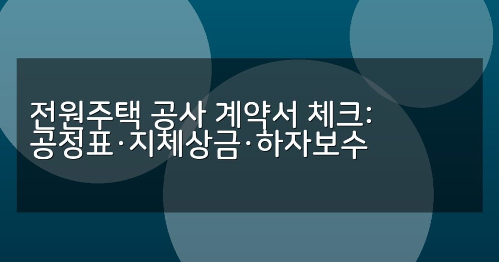 전원주택 공사 계약서 작성 시 필수 확인 사항인 공정표, 지체상금, 하자보수 조항을 상세히 안내합니다. 안전한 계약 체결을 위한 체크리스트와 FAQ 포함.
