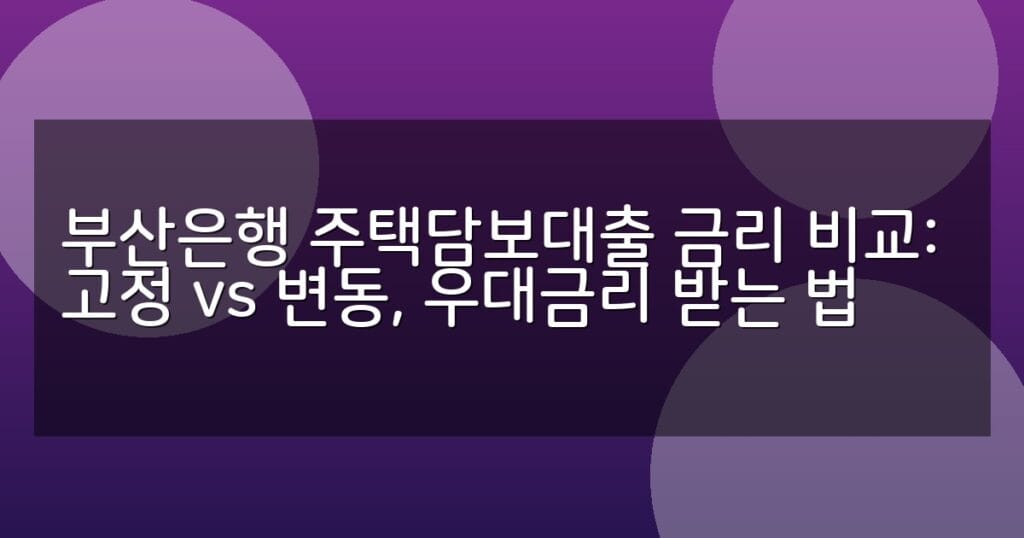 부산은행 주택담보대출의 고정금리와 변동금리 차이 및 우대금리 받는 방법을 상세 비교. 금리표와 신청 절차, FAQ까지 한눈에 확인하세요.