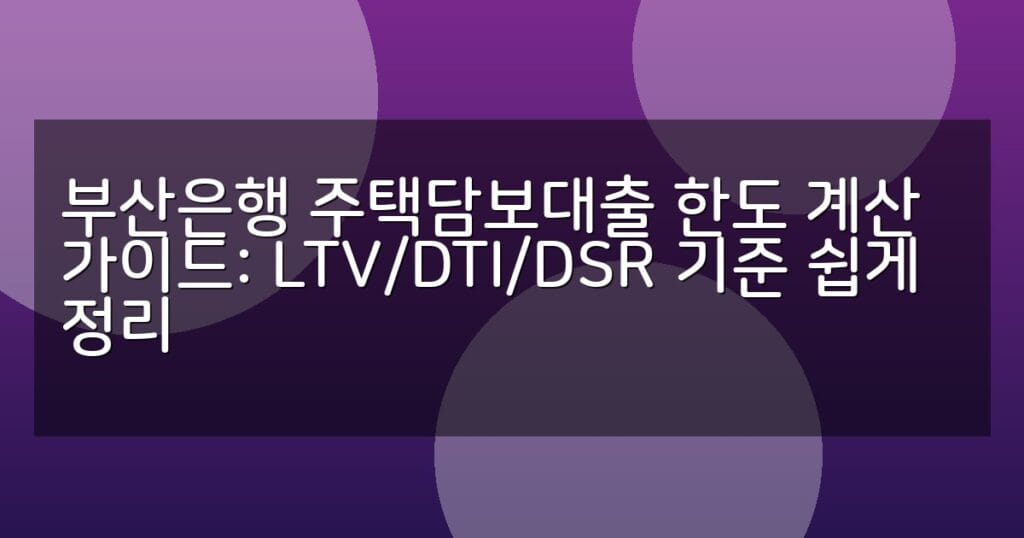 부산은행 주택담보대출 한도 계산법을 LTV, DTI, DSR 기준 중심으로 쉽게 정리했습니다. 대출 한도 산정과 신청 절차를 상세히 안내합니다.