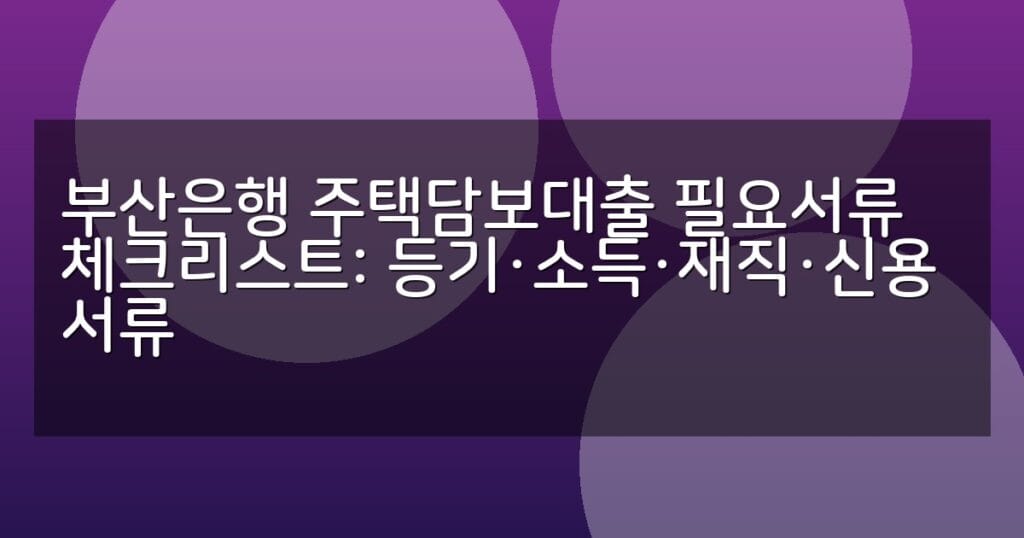 부산은행 주택담보대출 필수 서류 체크리스트와 신청 절차를 상세히 안내합니다. 등기, 소득, 재직, 신용 서류별 준비 방법과 비교표 제공.