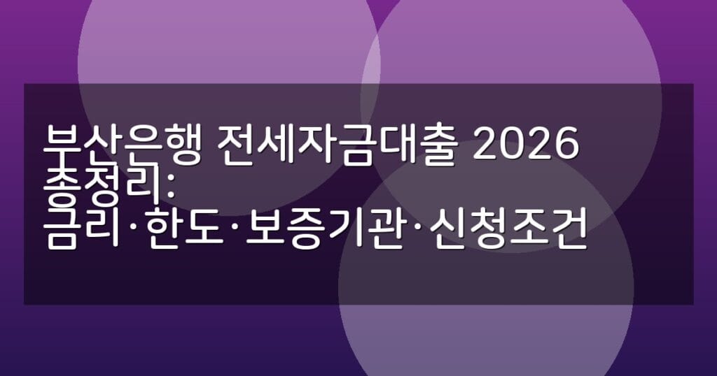 2026년 부산은행 전세자금대출의 금리, 한도, 보증기관, 신청조건을 상세히 안내합니다. 단계별 신청 절차와 FAQ로 대출 준비를 완벽하게 하세요.