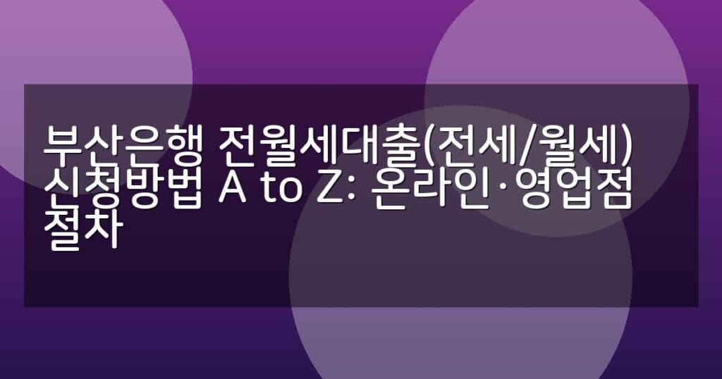 부산은행 전월세대출 신청방법을 온라인과 영업점 절차별로 자세히 안내합니다. 전세·월세 대출 조건과 금리 비교, 신청 서류와 FAQ까지 한눈에 확인하세요.