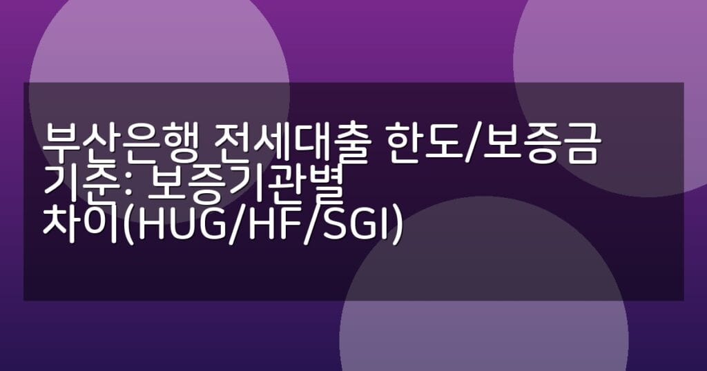 부산은행 전세대출 한도와 보증금 기준을 HUG, HF, SGI 보증기관별로 상세 비교. 신청 절차, 보증료, 주의사항까지 한눈에 확인하세요.
