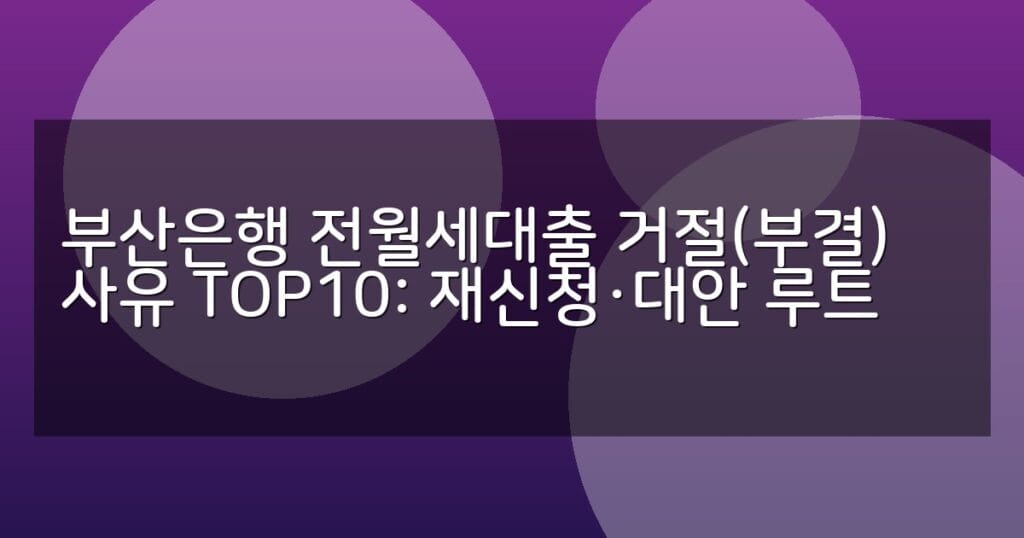 부산은행 전월세대출 거절 사유 TOP10과 재신청 방법, 대안 대출 상품 비교 및 신청 절차를 상세 안내합니다. 최신 정책 반영, 쉽고 빠른 정보 확인 가능.
