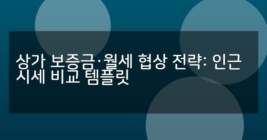 상가 보증금과 월세 협상 전략과 인근 시세 비교 템플릿을 통해 효과적인 임대료 조정 방법과 계약 절차를 상세히 안내합니다.