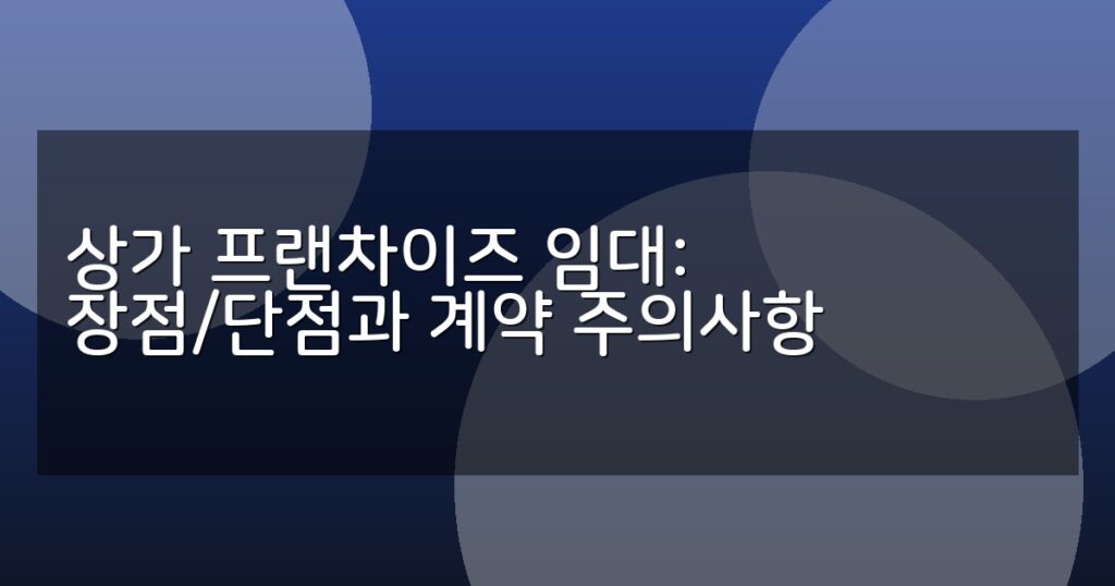 상가 프랜차이즈 임대의 장단점과 계약 시 주의사항을 상세히 안내합니다. 임대료, 권리금, 계약 조건 등 핵심 정보를 한눈에 확인하세요.