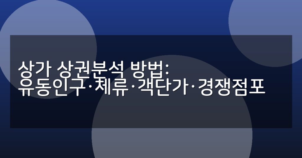 상가 상권분석 방법을 유동인구, 체류시간, 객단가, 경쟁점포 중심으로 상세히 안내합니다. 창업 성공을 위한 필수 전략과 실전 절차 포함.