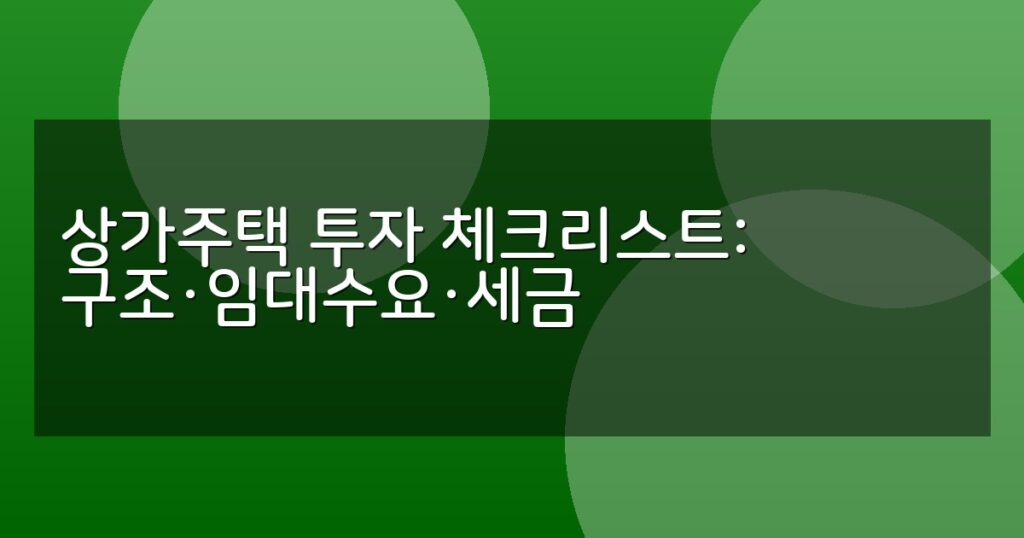 상가주택 투자 시 구조 점검, 임대수요 분석, 세금 절세 전략 등 필수 체크리스트를 상세히 안내하는 2026년 최신 가이드입니다.