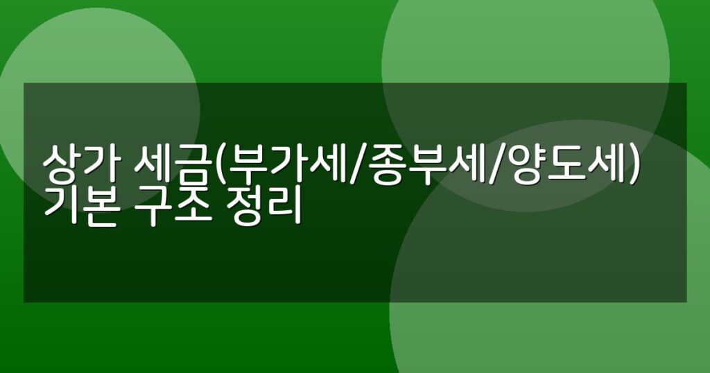 상가 부가세, 종부세, 양도세 기본 구조와 신고 절차를 상세히 비교 분석. 세금 부담과 절차를 쉽게 이해할 수 있도록 표와 FAQ 제공.
