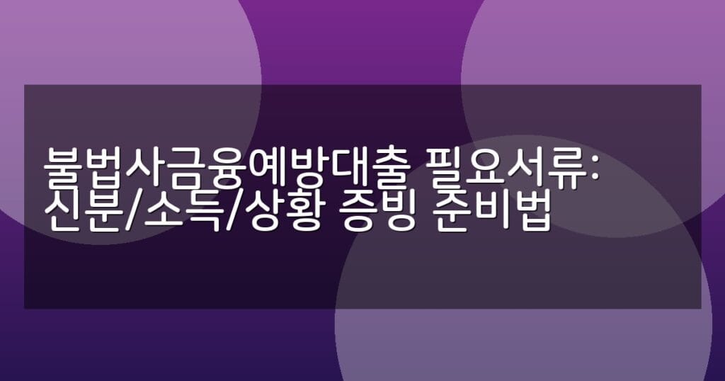 불법사금융예방대출 신청에 필요한 신분, 소득, 상황 증빙서류 준비법과 단계별 신청 절차를 상세히 안내합니다. 최신 정보와 FAQ 포함.