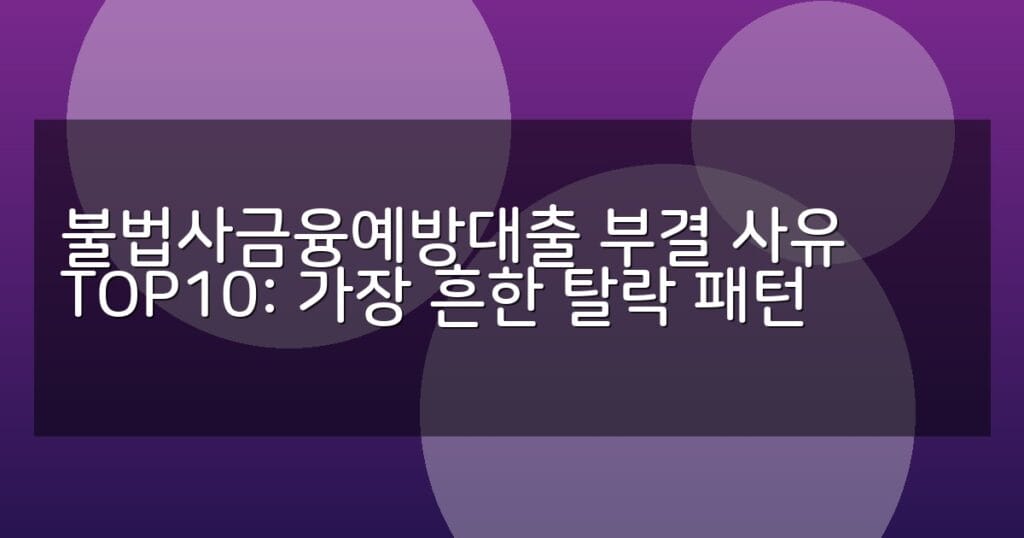 불법사금융예방대출 부결 사유 TOP10과 탈락 패턴을 상세 분석합니다. 신용등급, 소득증빙, 연체 기록 등 주요 원인과 신청 절차, FAQ까지 실무 정보 제공.