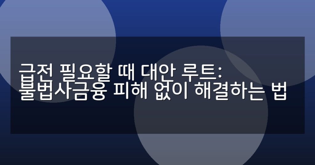 급전이 필요할 때 불법사금융 피해 없이 정부 지원금, 저금리 정책자금, 신뢰할 수 있는 대출 상품 등 안전한 대안 루트를 통해 현명하게 자금을 마련하는 방법을 안내합니다.