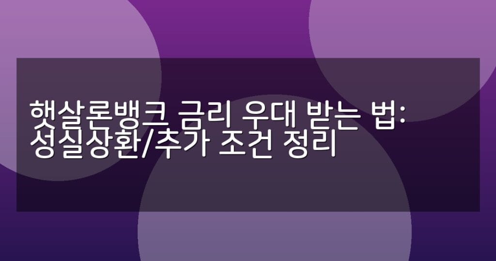 햇살론뱅크 금리 우대 받는 법을 성실상환과 추가 조건 중심으로 상세 정리했습니다. 신청 절차와 주의사항, FAQ까지 꼼꼼히 안내합니다.