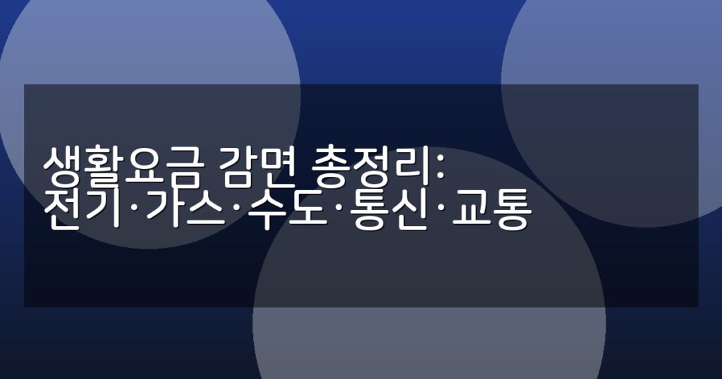 전기, 가스, 수도, 통신, 교통 생활요금 감면 제도와 신청 방법을 상세히 안내합니다. 다양한 표와 단계별 절차로 쉽게 확인하세요.