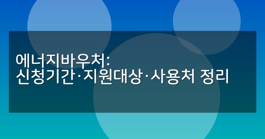 에너지바우처 신청기간, 지원대상, 사용처를 상세하게 정리했습니다. 단계별 신청 절차와 지원금액, 자주 묻는 질문까지 한눈에 확인하세요.