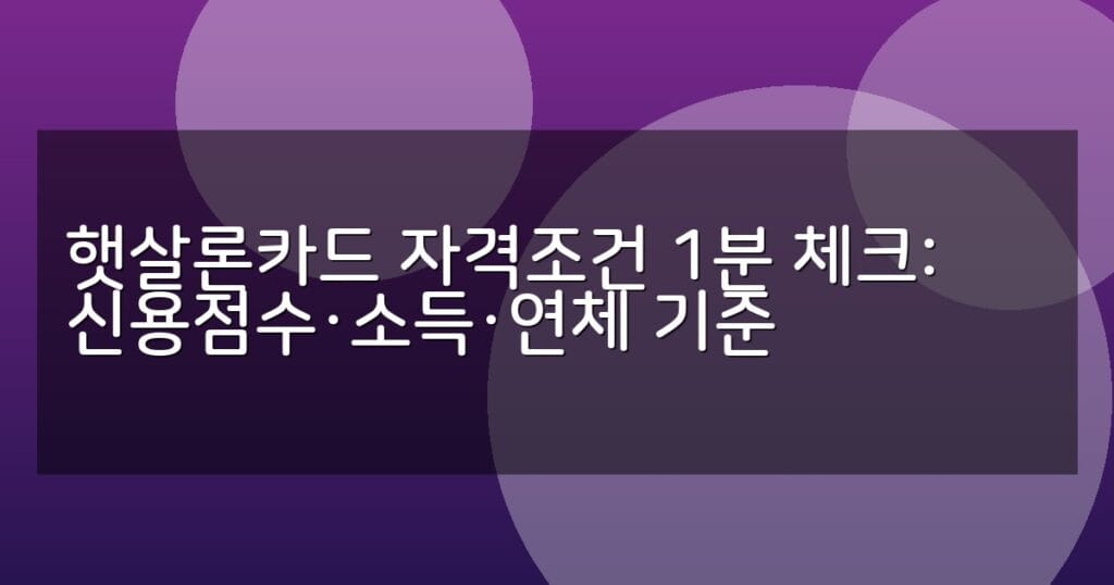 햇살론카드 자격조건을 신용점수, 소득, 연체 기준 중심으로 1분 만에 체크하세요. 신청 절차와 FAQ까지 상세 안내합니다.