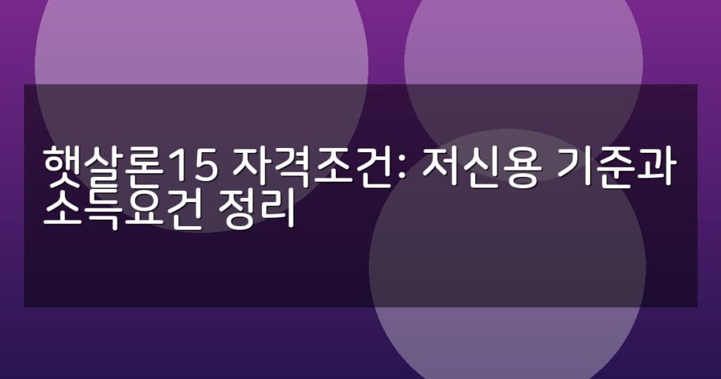 햇살론15 자격조건과 저신용 기준, 소득요건을 상세히 정리했습니다. 신청 절차와 유의사항까지 꼼꼼히 안내하는 2026년 최신 가이드입니다.