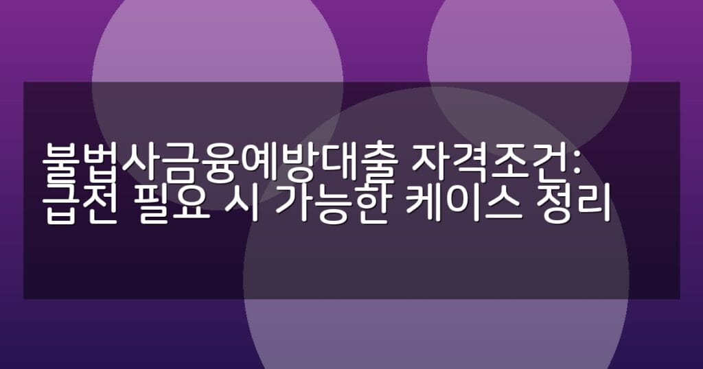 불법사금융예방대출 자격조건과 급전 필요 시 신청 가능한 케이스를 단계별로 안내합니다. 안전한 대출 이용법과 자주 묻는 질문까지 자세히 소개합니다.