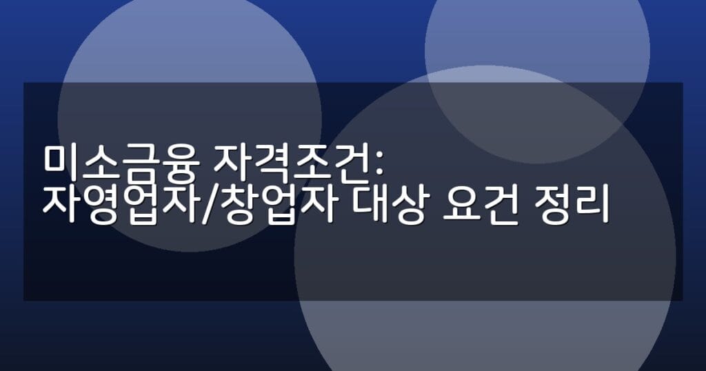 미소금융 자격조건 및 신청 절차를 자영업자와 창업자 대상 맞춤형으로 자세히 안내합니다. 대출 혜택과 준비서류, 자주 묻는 질문까지 완벽 정리.