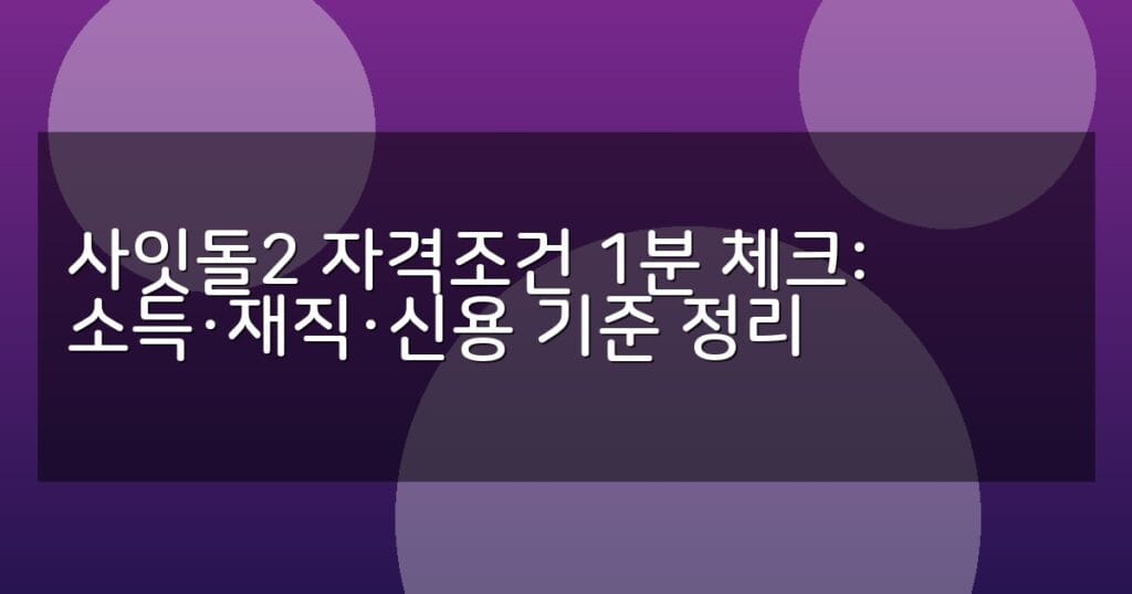 사잇돌2 대출 자격조건을 소득, 재직, 신용 기준 중심으로 1분 만에 체크해보세요. 신청 절차 및 준비서류까지 실무에 유용한 정보를 제공합니다.