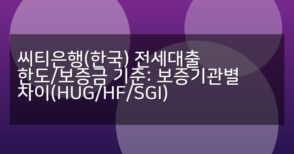 씨티은행 전세대출 한도와 보증금 기준을 HUG, HF, SGI 보증기관별로 상세 비교합니다. 신청 절차, 조건, 주의사항까지 꼼꼼하게 안내합니다.
