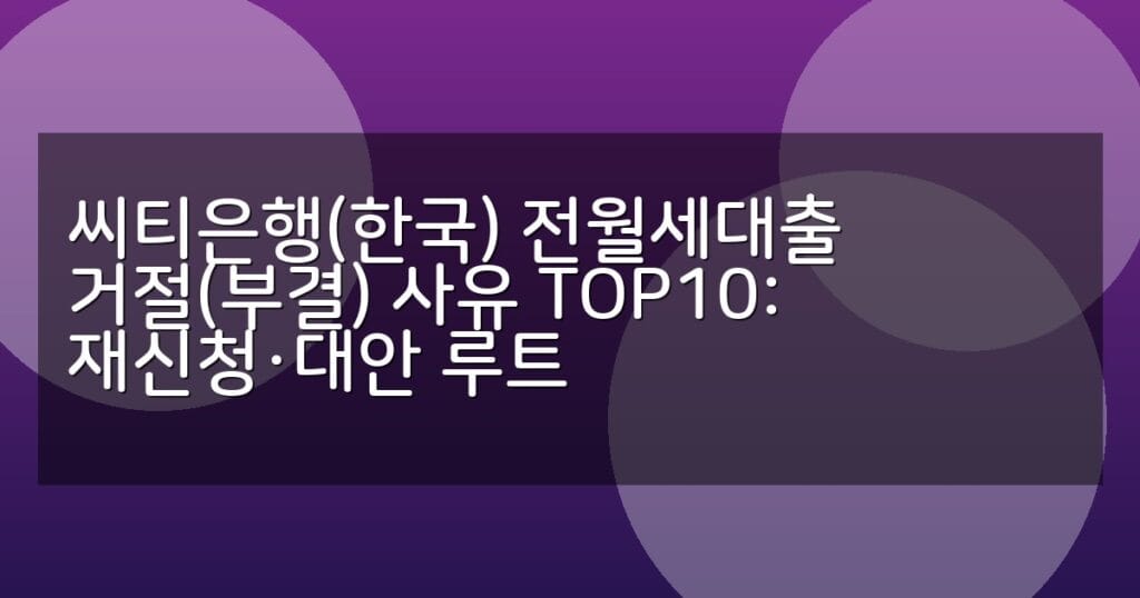씨티은행 한국 전월세대출 거절 사유 TOP10과 재신청 방법, 대안 대출 상품 비교 및 신청 팁을 풍부한 표와 함께 실무적으로 안내합니다.