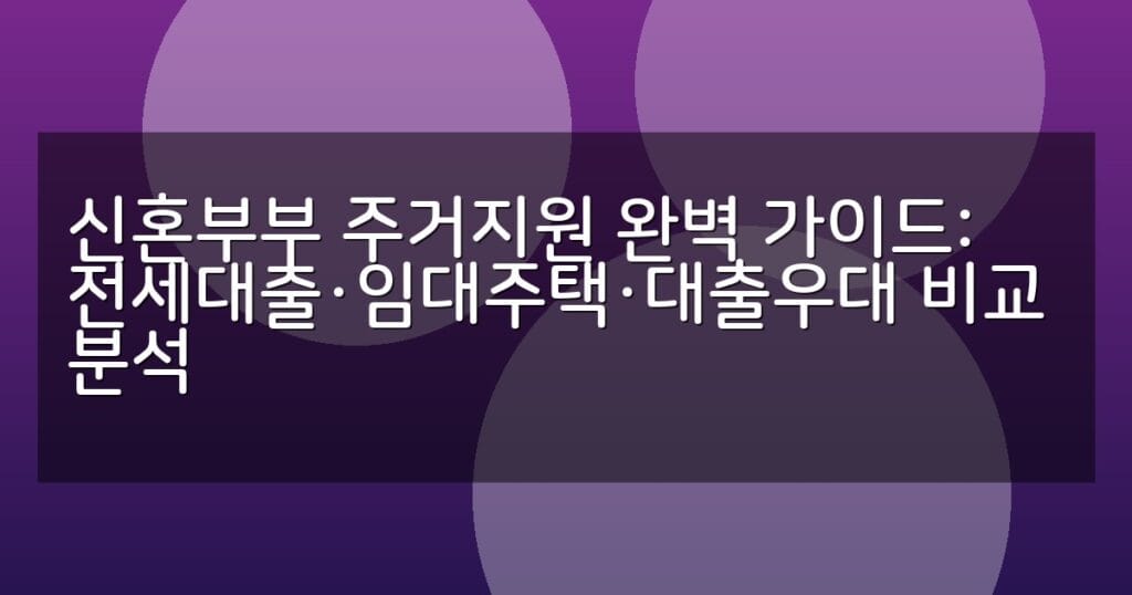 2026년 신혼부부 주거지원 제도 완벽 정리. 전세대출, 임대주택, 대출우대 정책별 특징과 신청 절차를 단계별로 안내합니다.