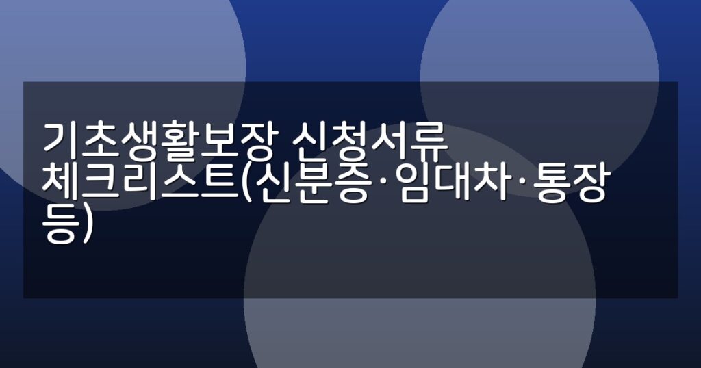 기초생활보장 신청에 필요한 신분증, 임대차계약서, 통장 사본 등 필수 서류와 신청 절차, 지자체별 유의사항, FAQ를 상세히 안내합니다.