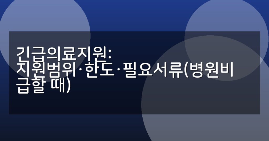 긴급의료지원 제도의 지원범위, 한도, 필요서류 및 신청 절차를 상세 안내합니다. 병원비 급할 때 꼭 알아야 할 정보를 표와 FAQ로 쉽게 확인하세요.