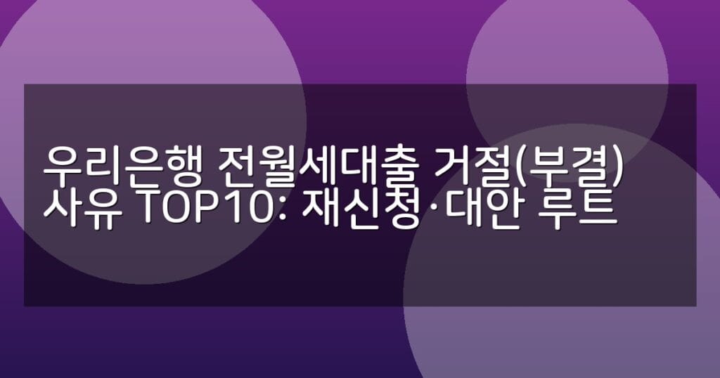 우리은행 전월세대출 거절 사유 TOP10과 재신청 방법, 대안 대출 상품 비교, 신청 절차 및 FAQ를 상세히 안내합니다.