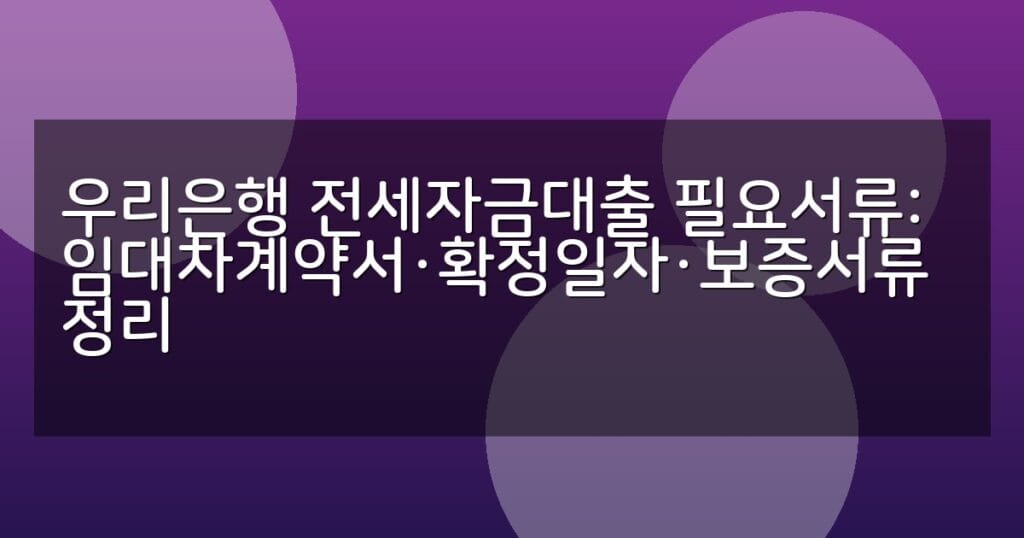 우리은행 전세자금대출 필요서류(임대차계약서, 확정일자, 보증서류)를 단계별 절차와 표로 쉽게 정리했습니다. 최신 정보와 FAQ 포함.