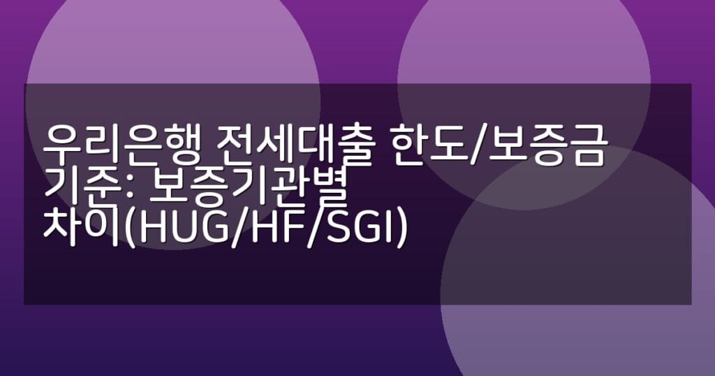 우리은행 전세대출 한도 및 보증금 기준을 HUG, HF, SGI 보증기관별로 상세 비교하고 신청 절차와 유의사항을 단계별로 안내합니다.