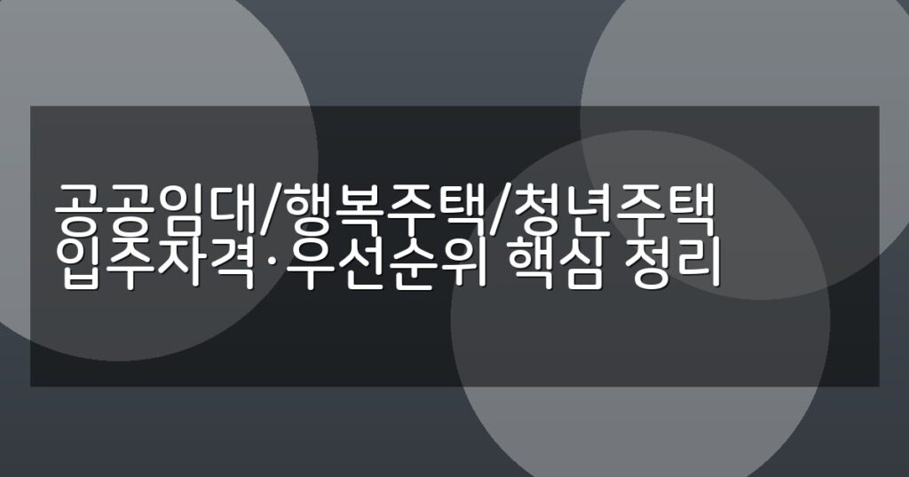공공임대, 행복주택, 청년주택의 입주자격과 우선순위를 비교해 단계별 신청 절차와 자주 묻는 질문까지 상세히 안내합니다.