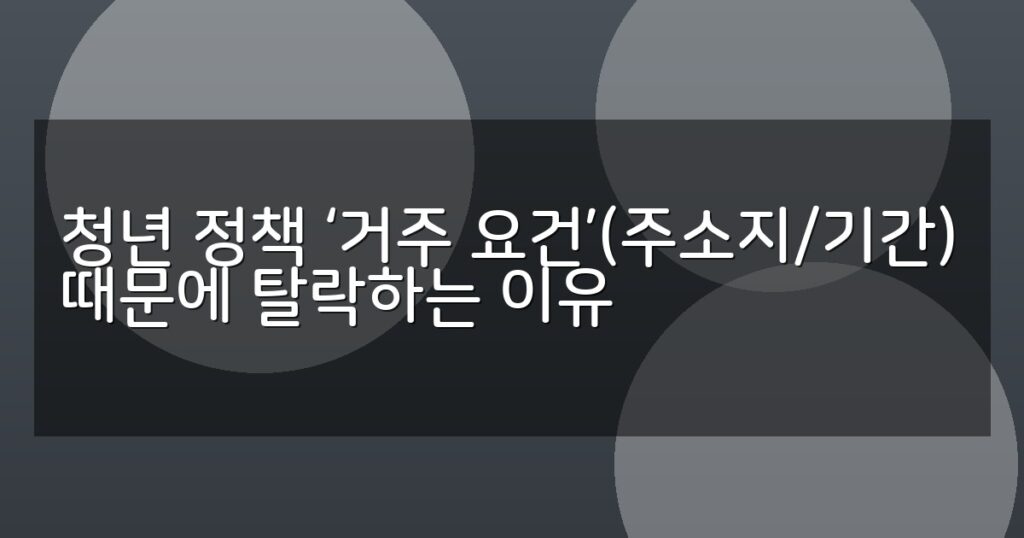 청년 정책 지원 탈락 원인의 핵심, 거주 요건(주소지 및 기간) 문제를 분석하고 지자체별 비교표와 신청 절차, 탈락 방지 팁을 제공합니다.