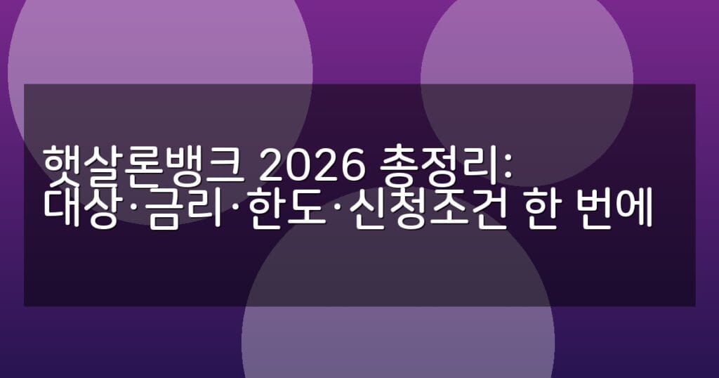 2026년 햇살론뱅크 대출 대상, 금리, 한도, 신청 조건과 절차를 상세히 안내합니다. 서민금융 지원 정책을 한 번에 확인하세요.
