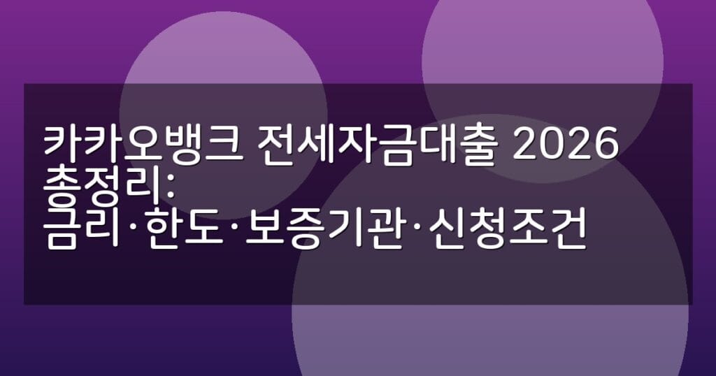 2026년 카카오뱅크 전세자금대출 금리, 한도, 보증기관, 신청 조건을 자세히 정리한 가이드입니다. 신청 절차와 FAQ까지 확인하세요.