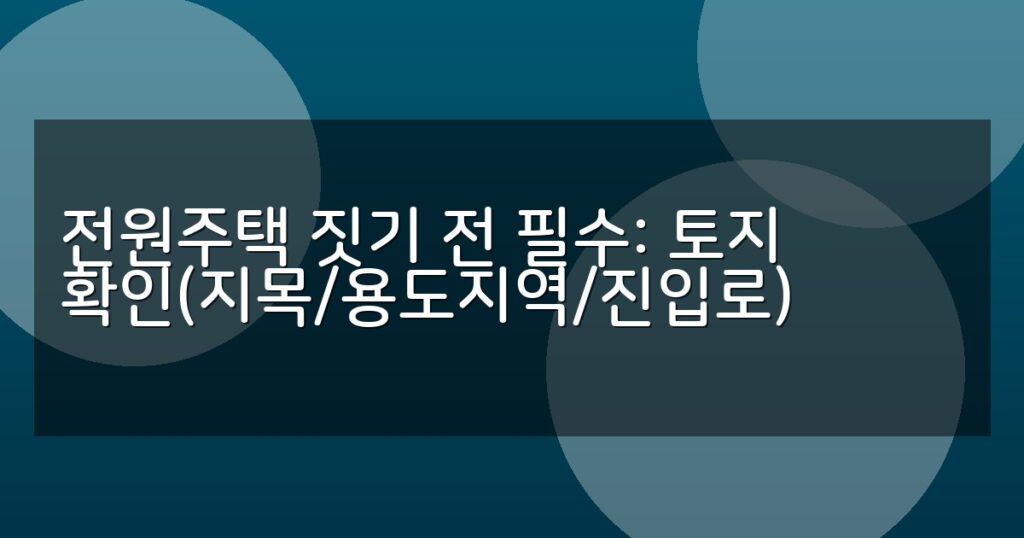 전원주택 건축 전 필수 확인 사항인 토지 지목, 용도지역, 진입로 조건을 상세 표와 단계별 절차로 안내합니다. 안전한 전원주택 준비 가이드.