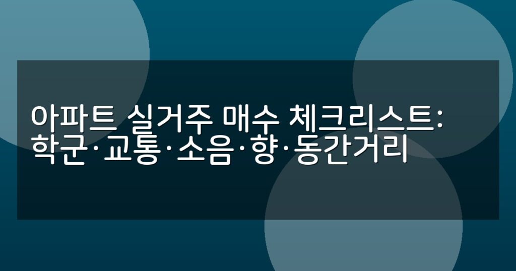 아파트 실거주 매수를 위한 학군, 교통, 소음, 향, 동간거리 체크리스트를 표와 함께 상세히 안내하는 2026년 최신 가이드입니다.