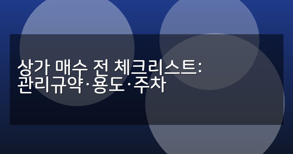 상가 매수 전 필수 관리규약, 용도, 주차 조건을 꼼꼼히 확인하는 법과 비교 분석 체크리스트, 절차를 상세히 안내하는 실무 가이드입니다.